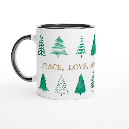 "Peace, Love, And Holiday Cheer" Mug – 11oz White Ceramic Cup with Christmas Designs | Holiday Gift Ideas