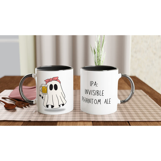 White Ceramic Mug – “IPA: Invisible Phantom Ale” Ghost with Pink Bow | Gift Ideas For Her