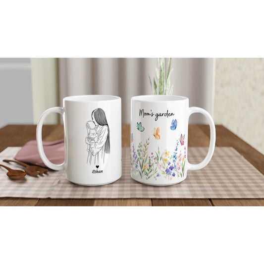 Custom Name Mother and Baby Mug – 15oz White Ceramic Cup | Gift Ideas For Mom's
